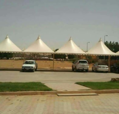 مظلات مخروطية الشكل ومتوفر منها نوعين  Pvc , pvdf ومنها ماركات مختلفة مثل الكوري والالماني وتتميز بتركيبها في الأماكن الواسعة ذات المساحات الكبيرة