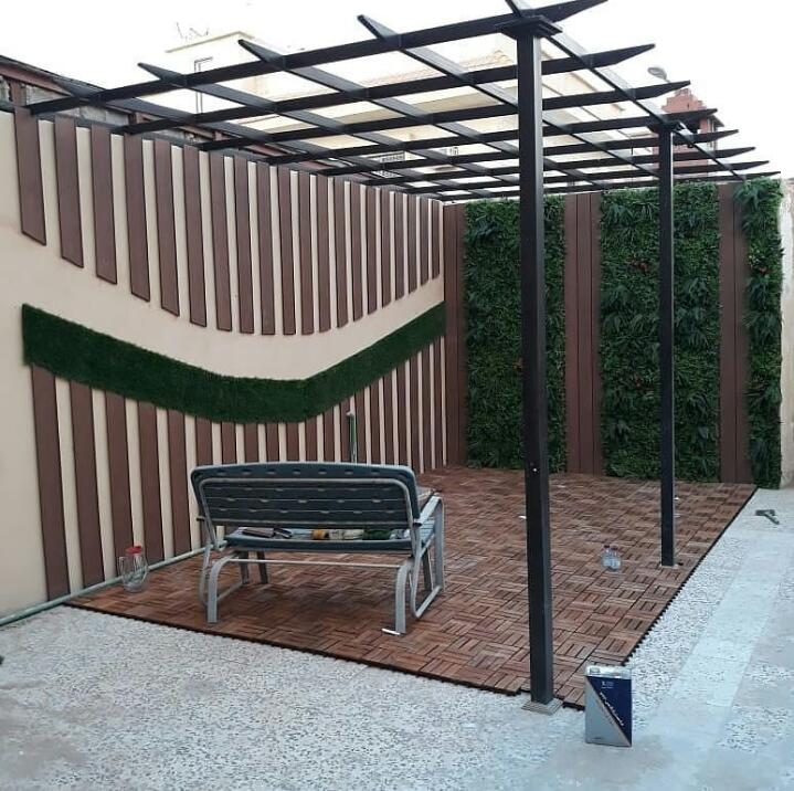 مظلات خشبية ويتم العمل على استخدامها فى المنازل والحدائق الخاصة بها وأيضا الشاليهاتتتكون من مجموعة شرائح مصنوعة من مادة البلاستيك والمخلوطة مع بعض المواد من الألياف الطبيعية لقطع خشب مطحونه والتى تتداخل  مع بعض وينتج مادة مختلطة من البلاستيك مع الخشب يطلق عليها خشب بلاستيكي يتميز بأنه يجمع بين كونه الخشب و مرونة البلاستيك.